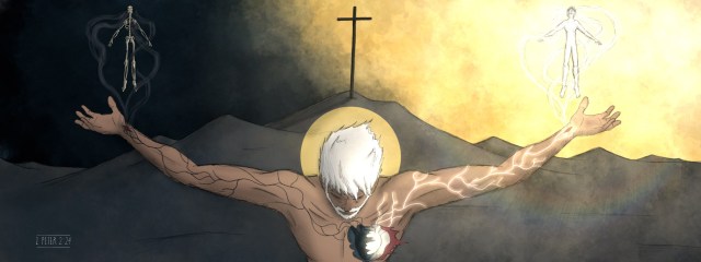 To rescue you from your sin, God became man. Lived a perfect, sinless life. Died a bloody death on the cross. Rose again. And ascended in His resurrected body to the right hand of God.